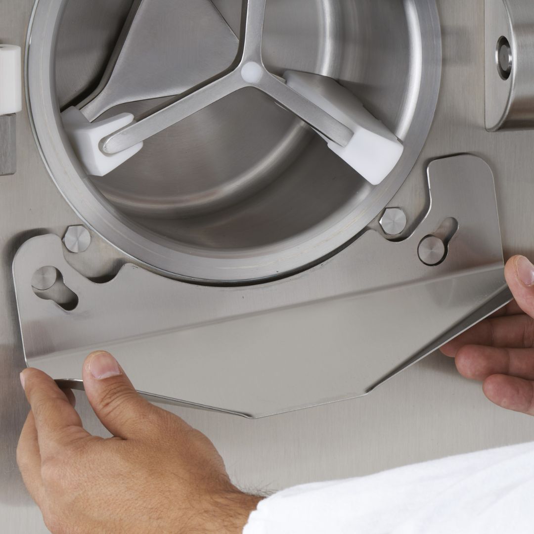 Agitateur POM: L’agitateur est sans arbre central avec des pales démontables en POM, impénétrable au froid, pour permettre l’extraction intégrale de la glace.