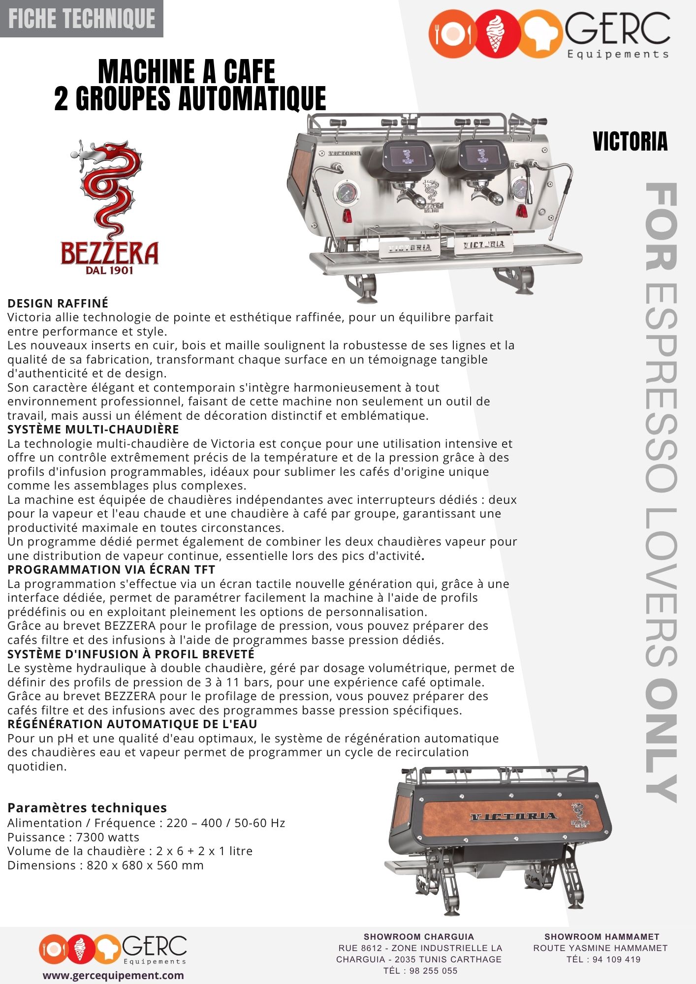 L’évolution mondiale de l’industrie de la préparation du café trouve sa pleine satisfaction dans VICTORIA ; le système multi-chaudières vous permet de programmer un réglage précis de la température, tandis que le système de profils d’infusion vous permet de programmer des profils de pression pour tirer le meilleur parti des cafés d’origine unique et des mélanges sophistiqués du monde entier.