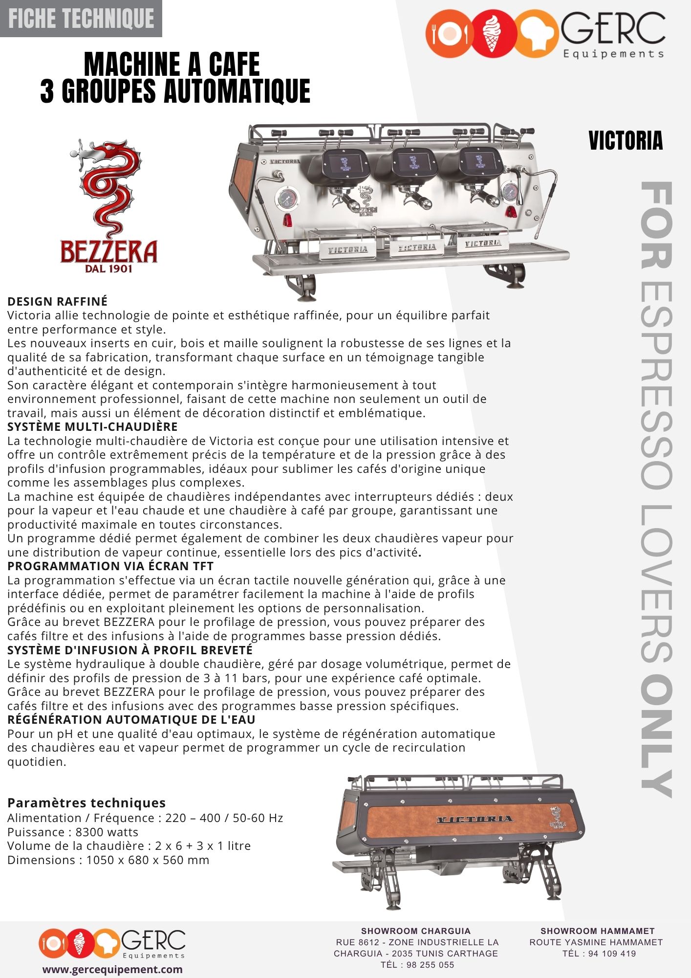 L’évolution mondiale de l’industrie de la préparation du café trouve sa pleine satisfaction dans VICTORIA ; le système multi-chaudières vous permet de programmer un réglage précis de la température, tandis que le système de profils d’infusion vous permet de programmer des profils de pression pour tirer le meilleur parti des cafés d’origine unique et des mélanges sophistiqués du monde entier.
