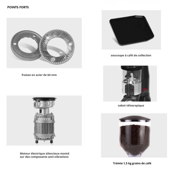 Le moulin Obel Mito BASIC M64, spacieux et fiable, un broyeur-doseur capable de résister à des cycles de travail stressants sans jamais perdre en précision, la grande qualité de ses composants en font un broyeur doseur parfait à combiner avec des machines à café professionnelles de haute qualité
