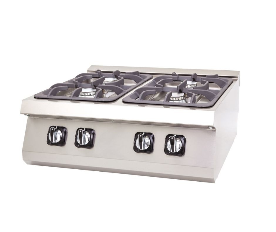 Le réchaud 4 feux gaz est un équipement de cuisson indispensable pour les restaurants et snacks , conçu par la marque GCF, robustesse, performance et praticité.